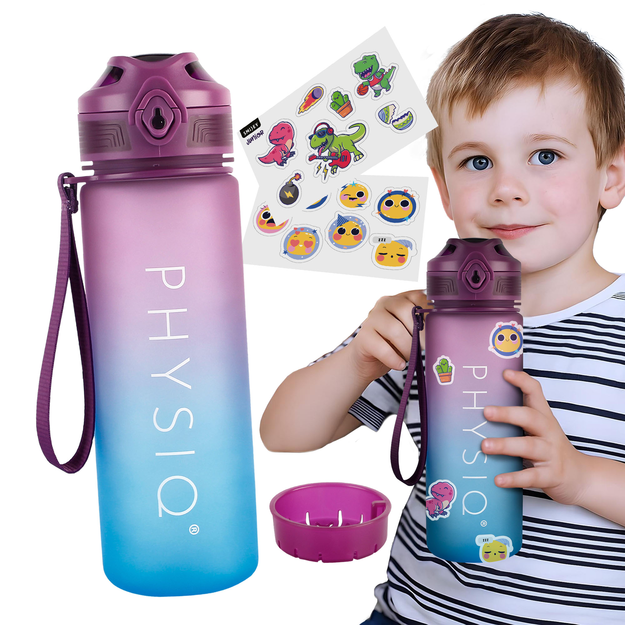 Butelka PHYSIQ to praktyczny towarzysz w szkole, przedszkolu i na treningach – zawsze pod ręką, aby dziecko mogło szybko i wygodnie sięgnąć po wodę.